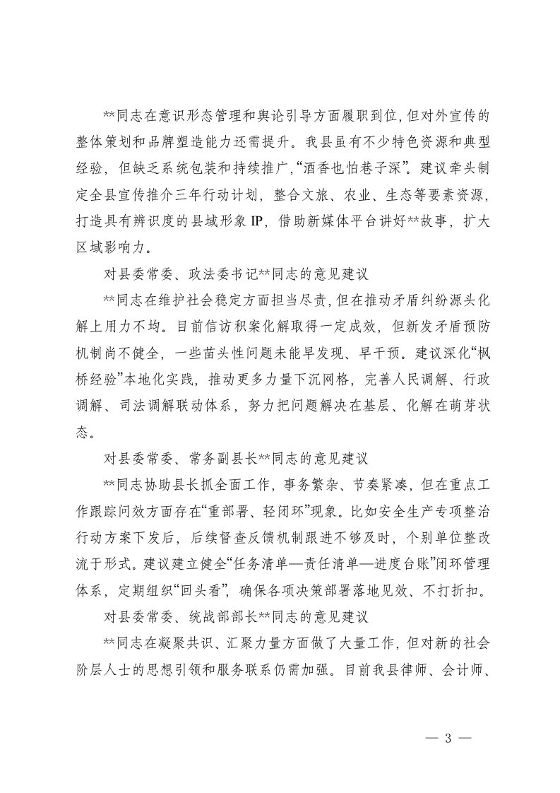 标题:县委常委班子党委班子镇委班子2025年度民主生活会相互批评意见
