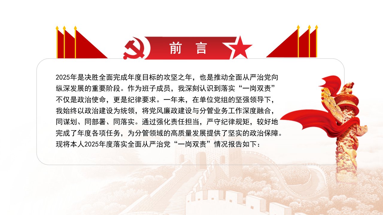 2026微党课「从严治党ppt模板」度落实全面从严治党“一岗双责”情况报告党课ppt模板(含配套讲稿)