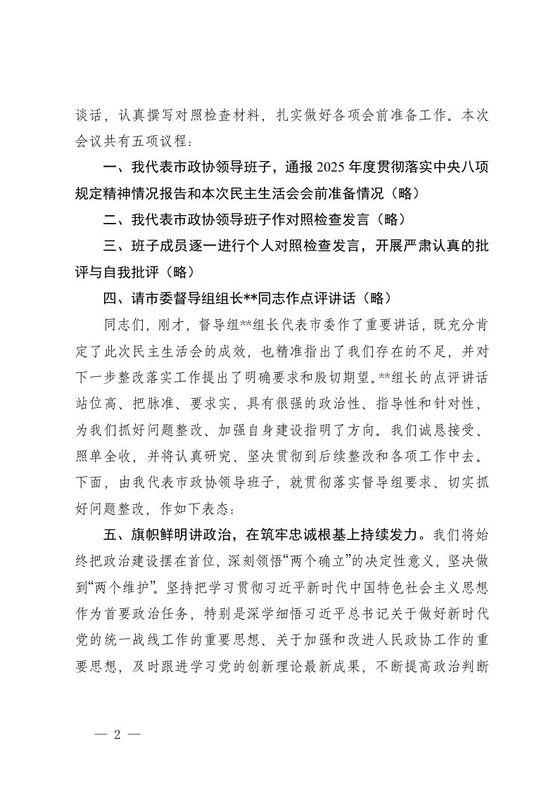 标题:5篇在市委常委班子2025年度民主生活会上的主持词和讲话
