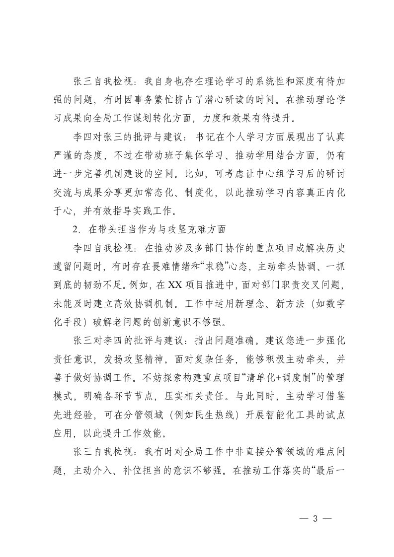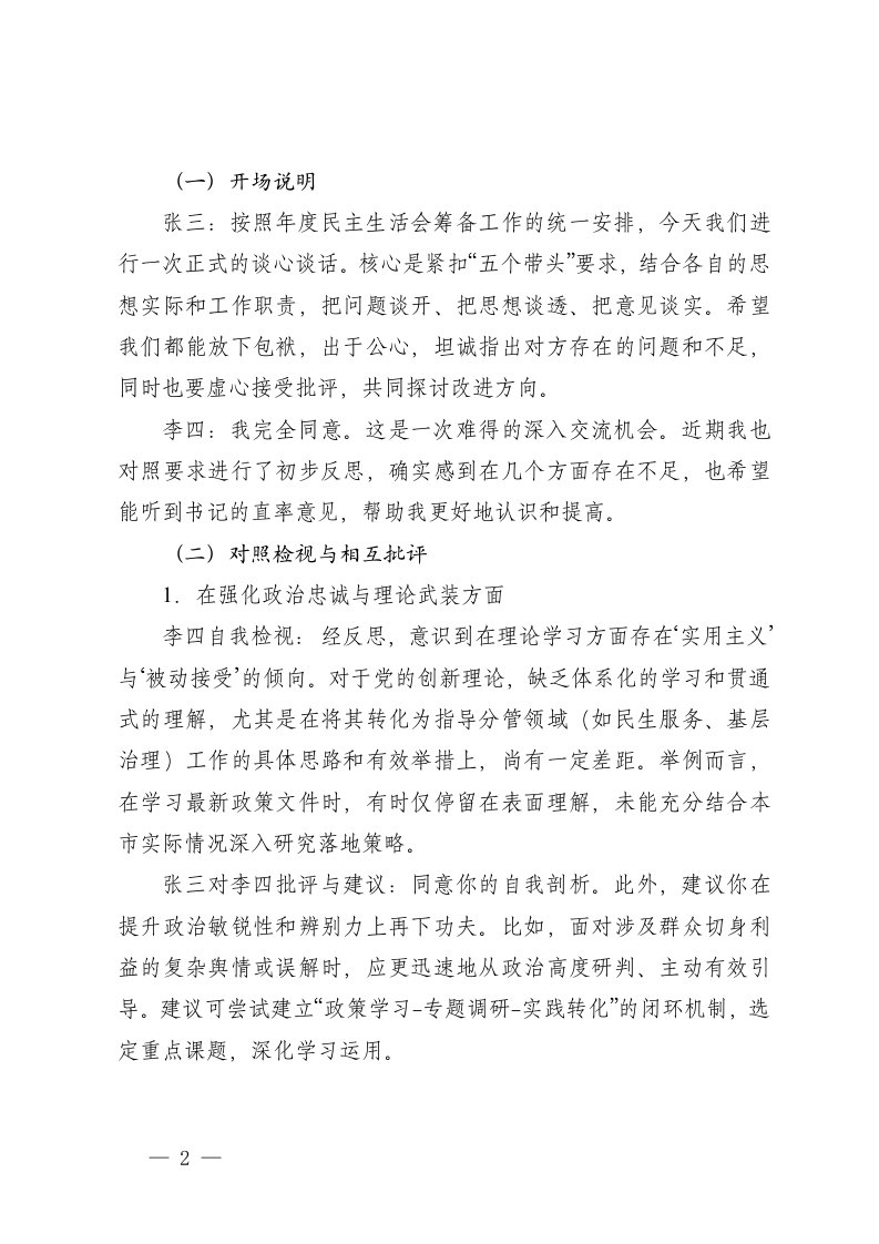 标题:2025年度民主生活会会前谈心谈话记录3份
