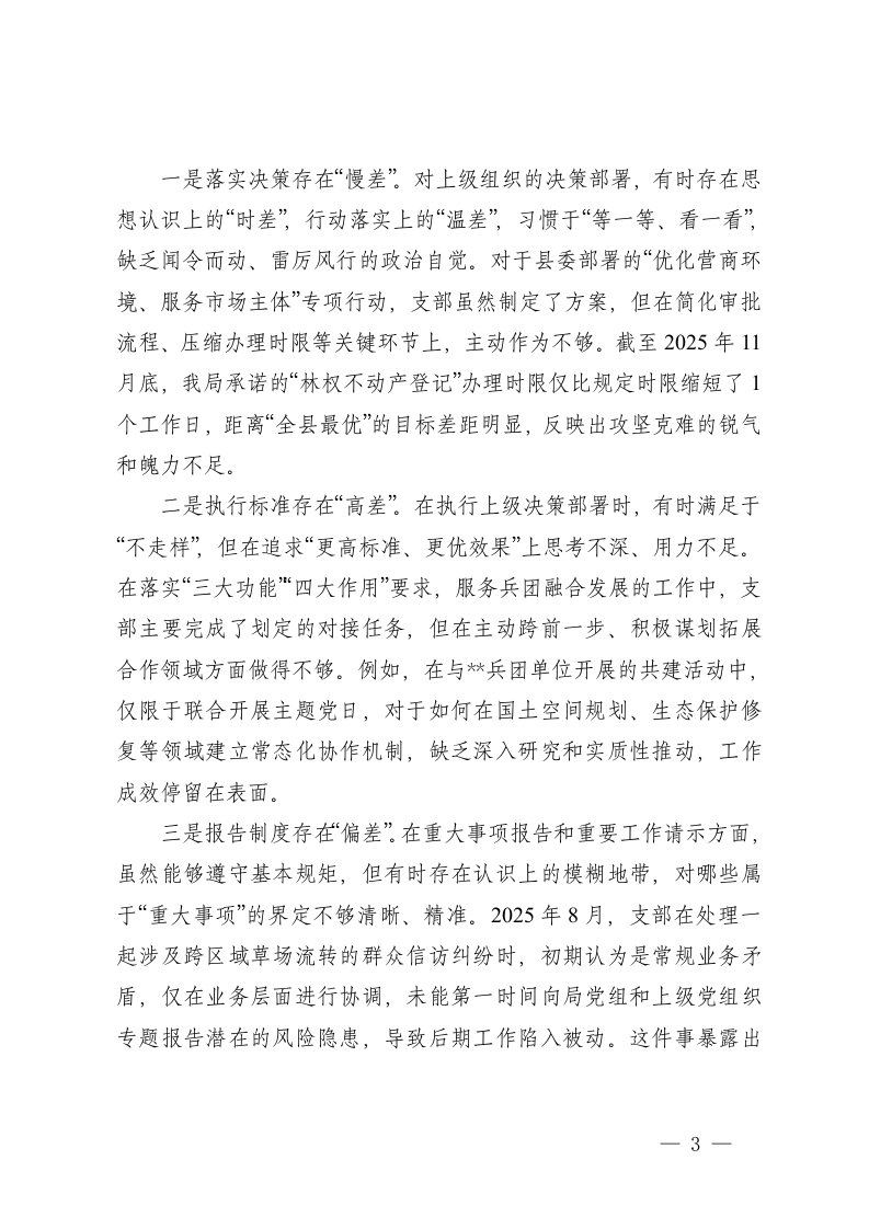 党支部2025年度组织生活会班子围绕在加强理论武装在执行上级组织决定方面在严格组织生活方面在加强党员管理监督方面在做好群众工作方面在抓好自身建设方面在意识形态领域七个方面含反面典型案例