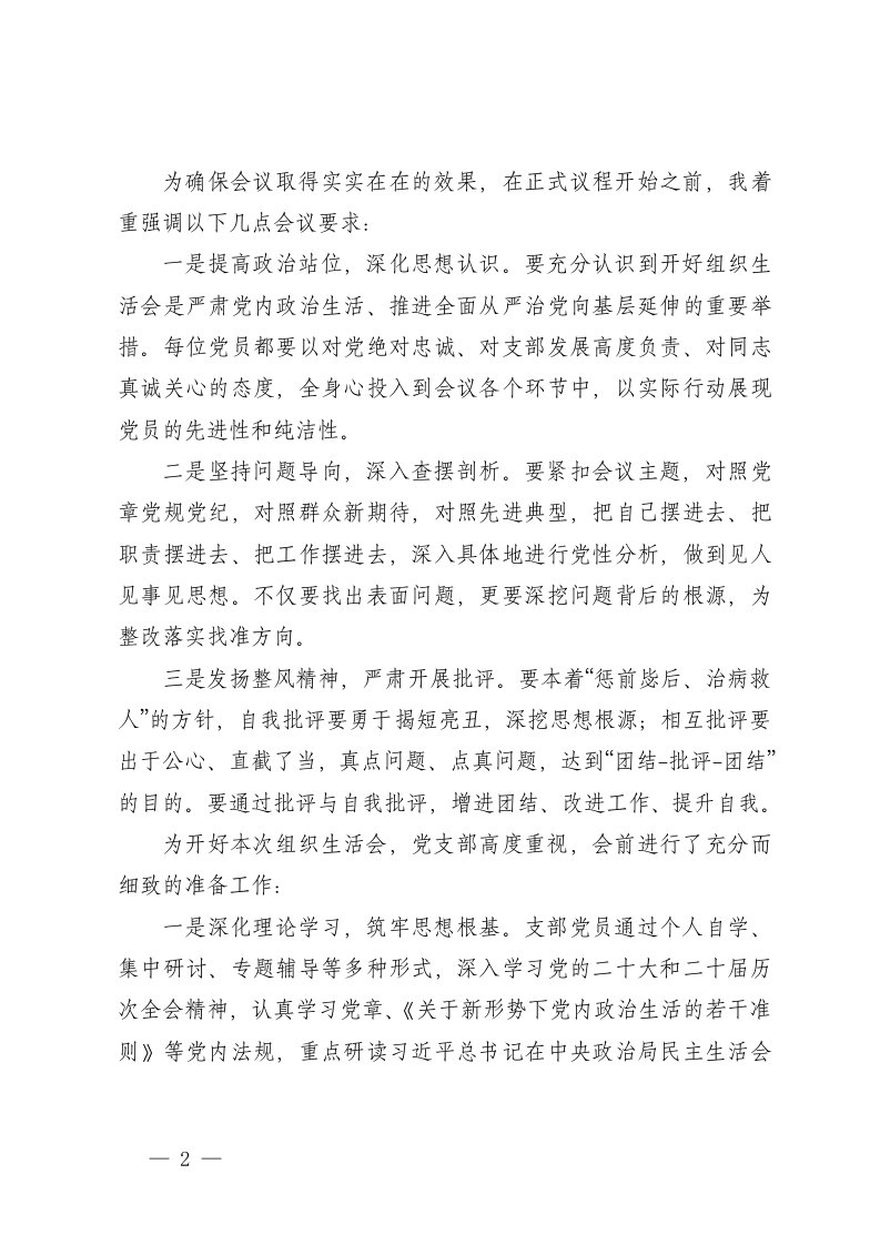 标题:在党支部2025年度组织生活会上的主持词3篇