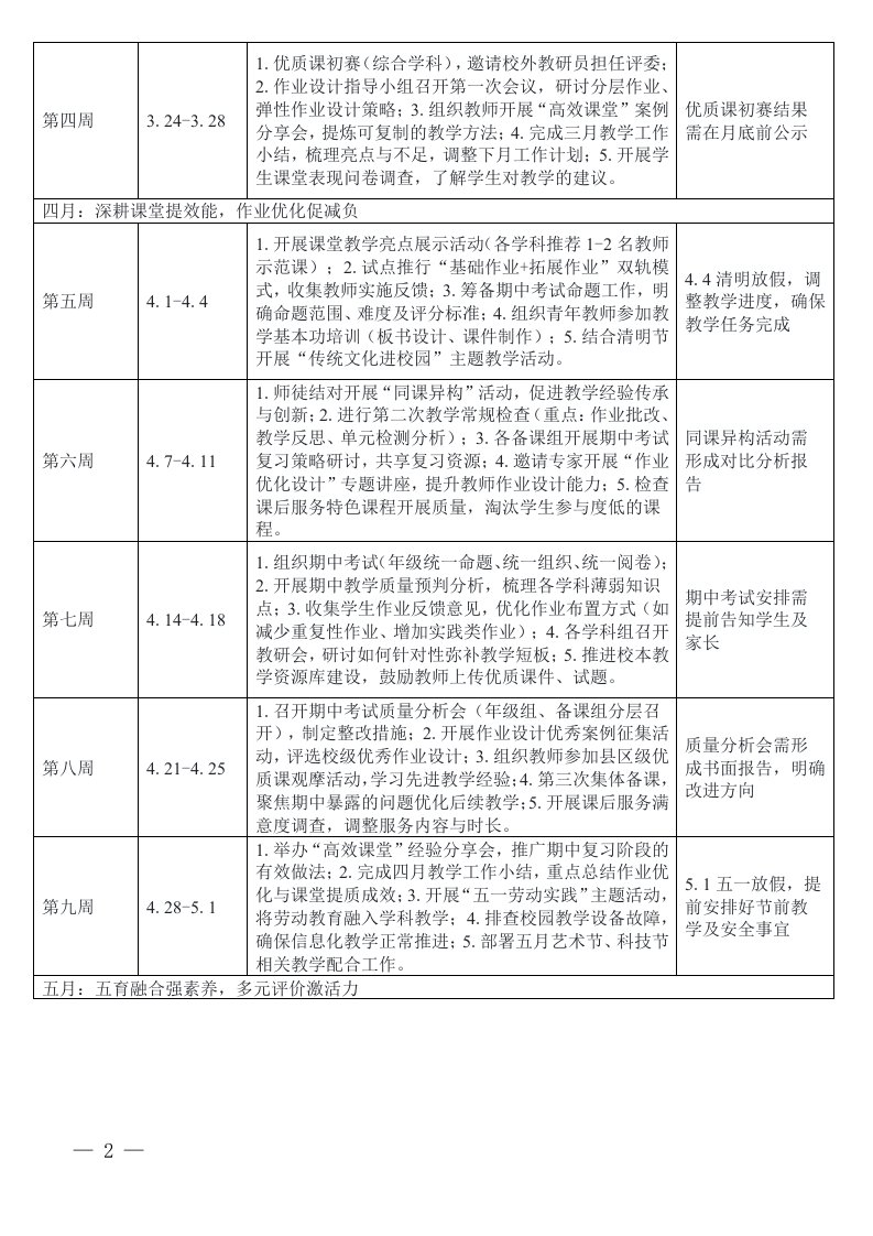 标题:2025-2026学年春季第二学期学校教导处工作计划及安排表