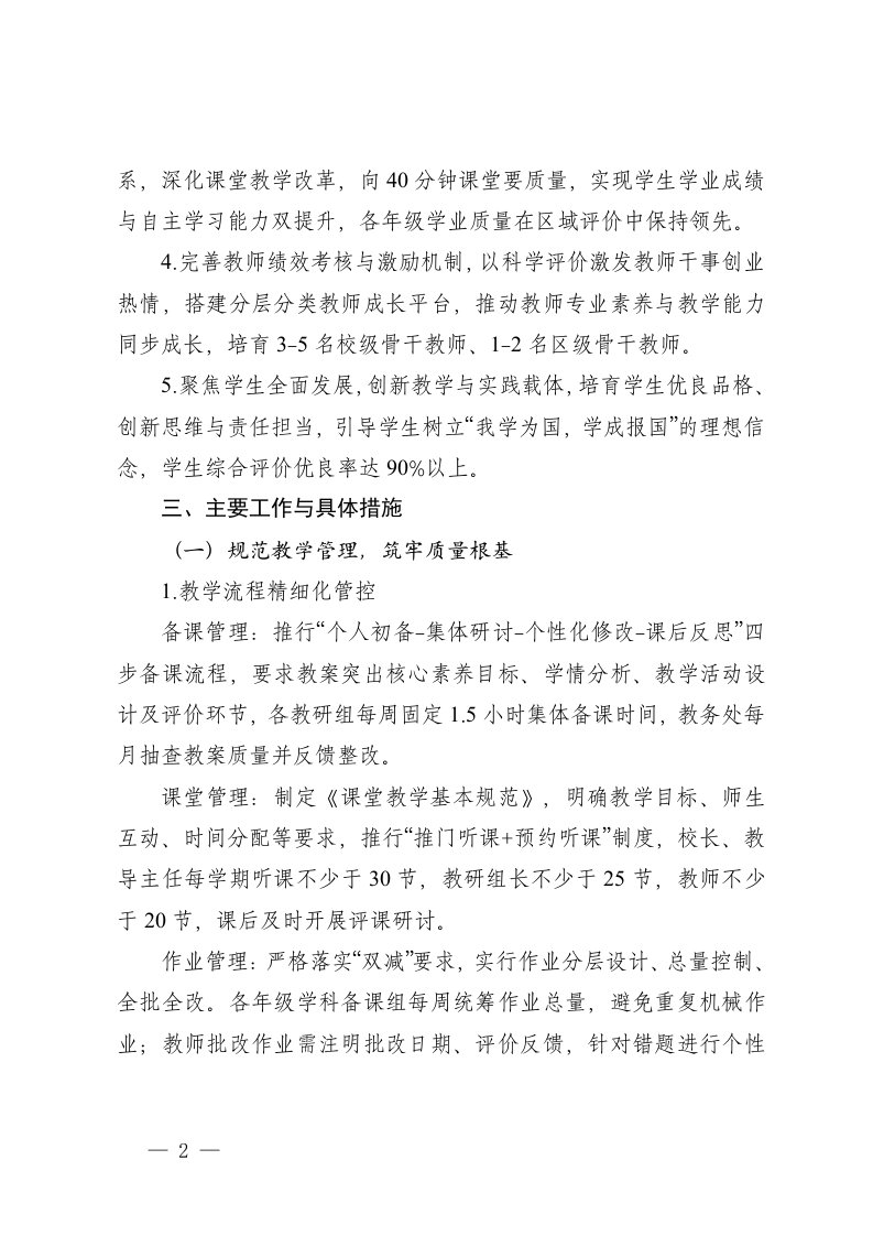 标题:2025-2026学年春季第二学期学校教务工作计划