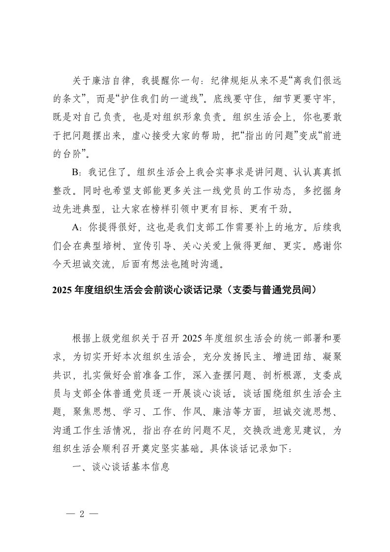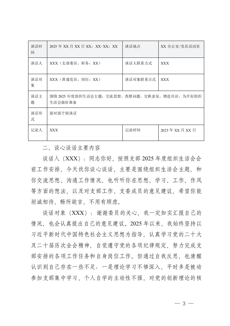 组织生活会,组织生活,谈心谈话,生活2025年度组织生活会会前谈心谈话记录支委与普通党员间组织生活会,组织生活,谈心谈话,生活2025年度组织生活会会前谈心谈话记录支委与普通党员间