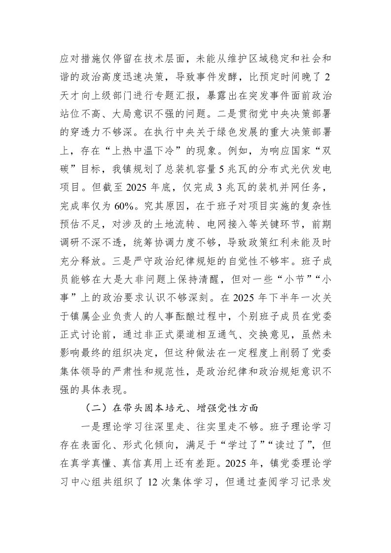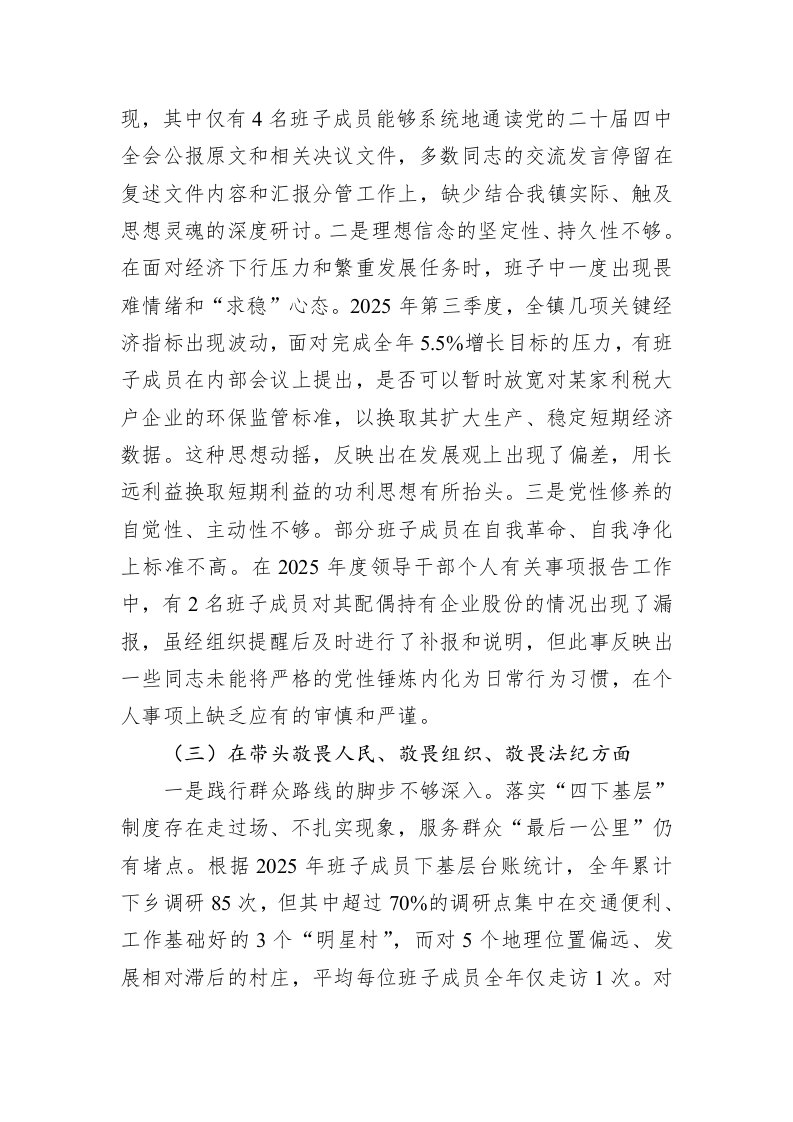 标题:镇领导班子2025年度民主生活会对照检查材料带案例