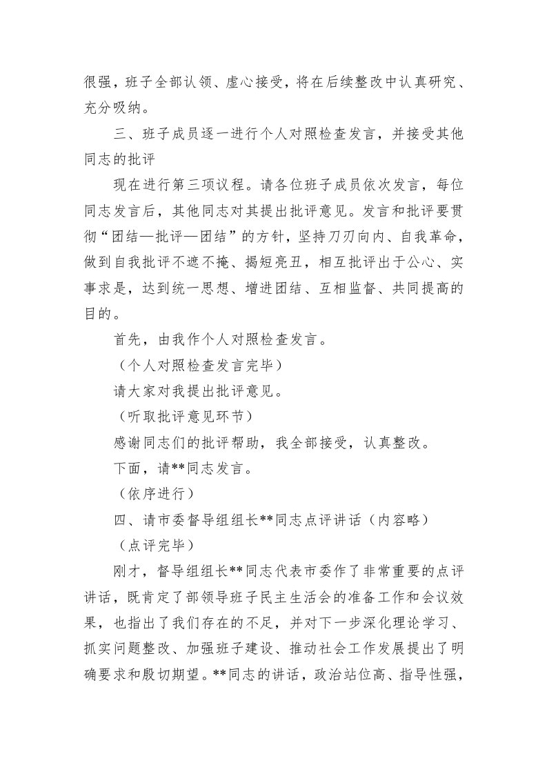 标题:在市委社会工作部领导班子2025年度民主生活会上的主持讲话