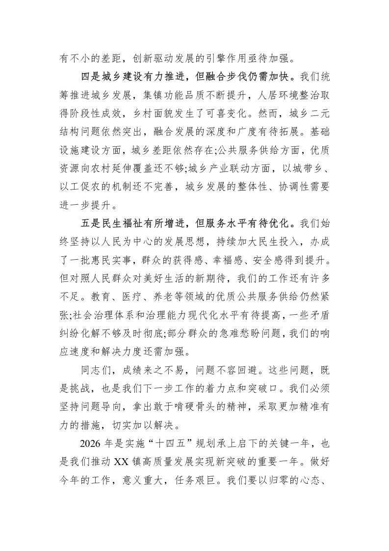 标题:在XX镇2025年工作总结暨2026年重点工作谋划会上的讲话