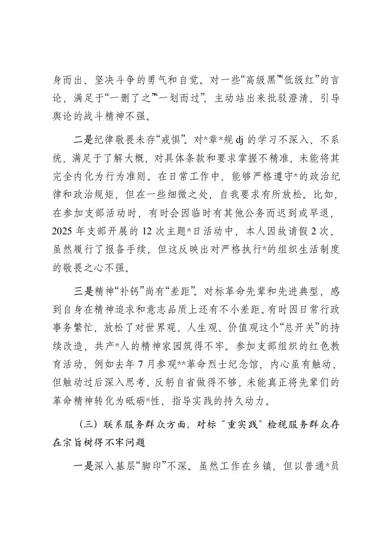 标题:乡党委书记2025年度组织生活会个人对照检查材料五个对照
