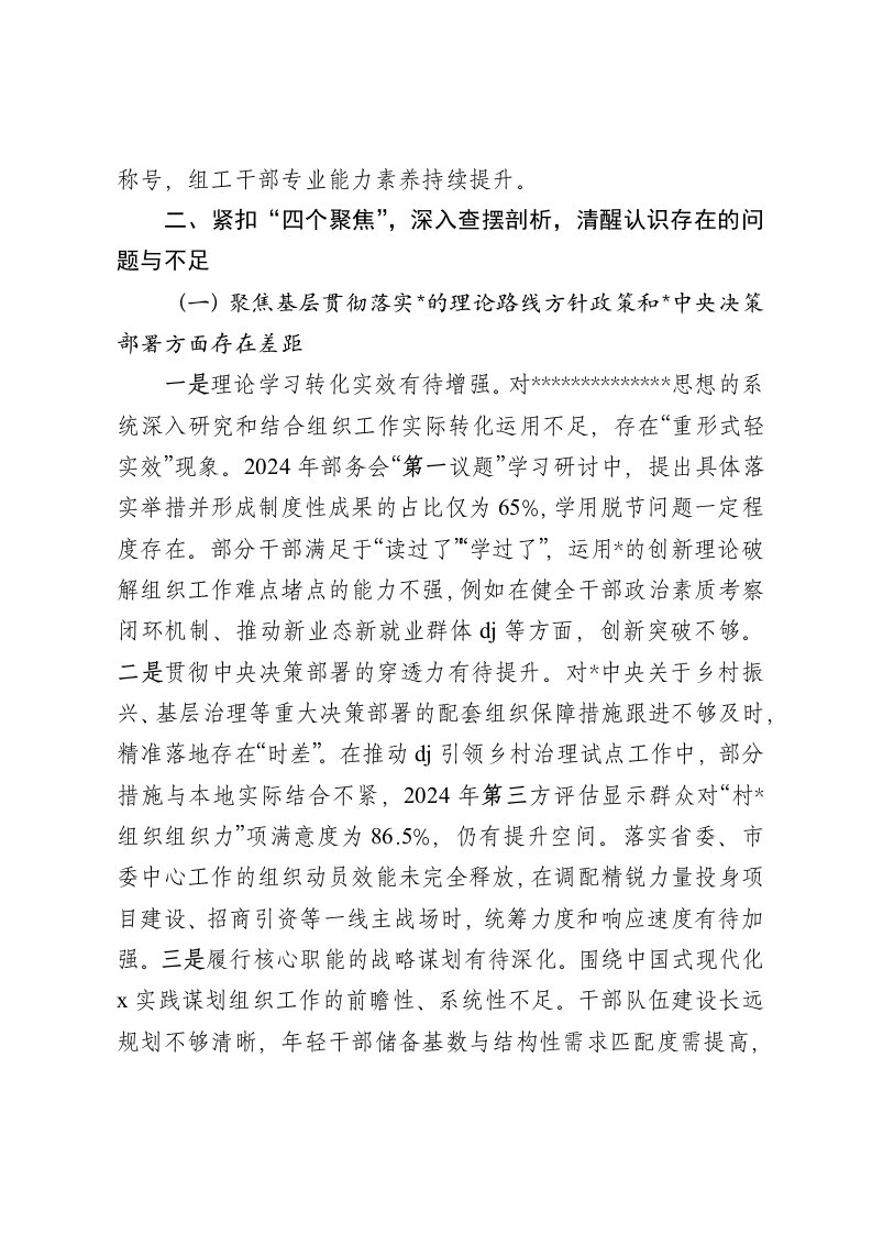 标题:县委组织部关于接受市委巡察工作专题报告