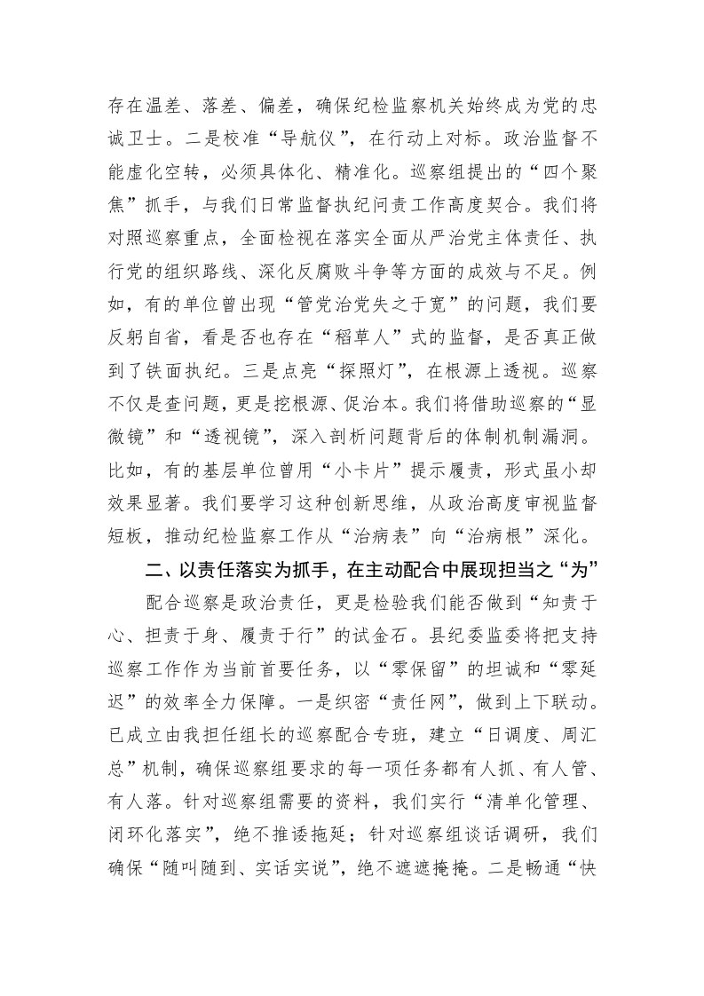 标题:县委书记在县委巡察组巡察县纪委监委机关工作动员会上的表态发言