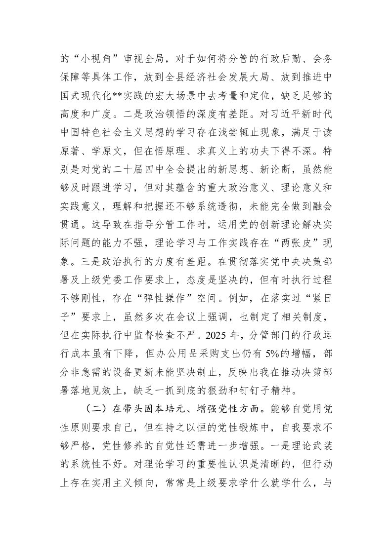 标题:县委办副主任2025年度民主生活会个人对照检查材料五个带头