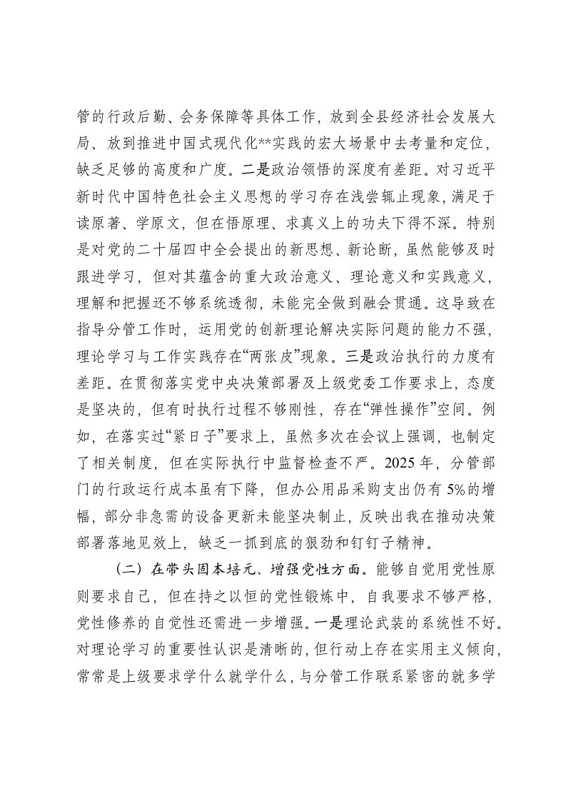 标题:县委办副主任2025年度民主生活会个人对照检查材料