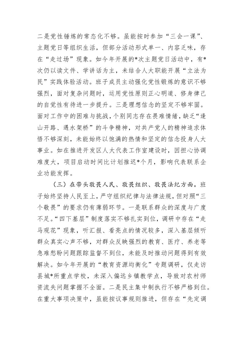 县人大常委会党组领导班子2025年度专题民主生活会对照检查材料