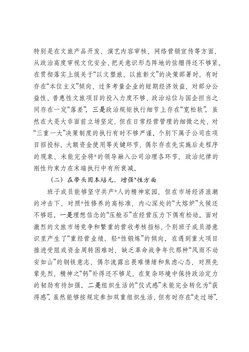 文旅集团公司2025年度民主生活会对照检查材料聚焦文旅融合提质效砥砺担当作为建新功