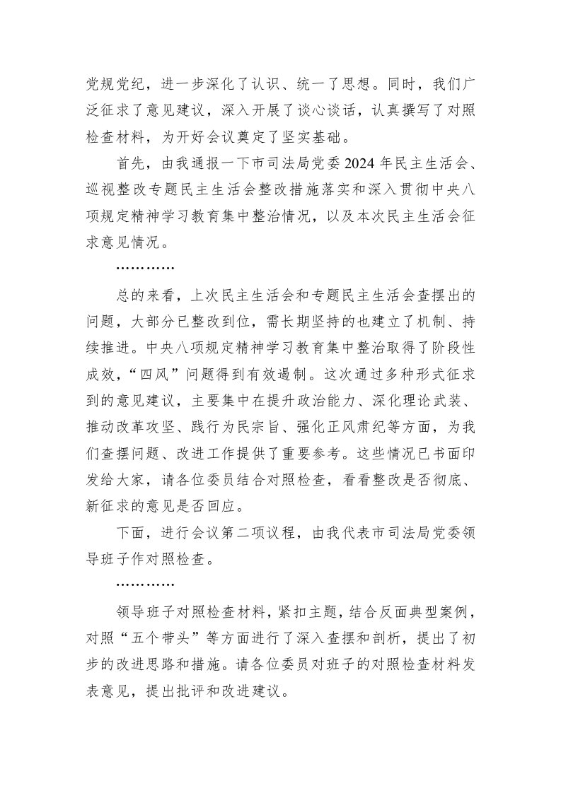 标题:司法局党委书记局长在2025年度民主生活会上主持讲话