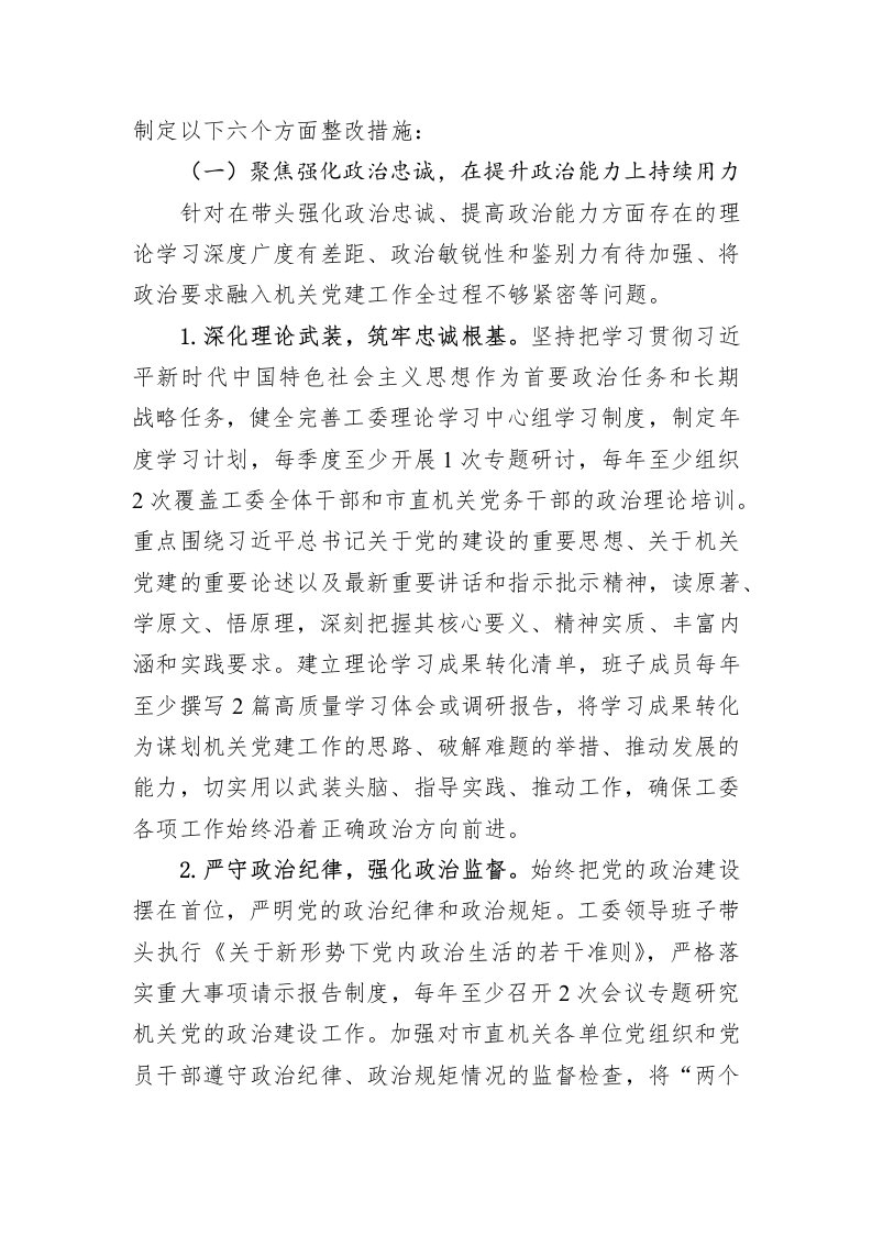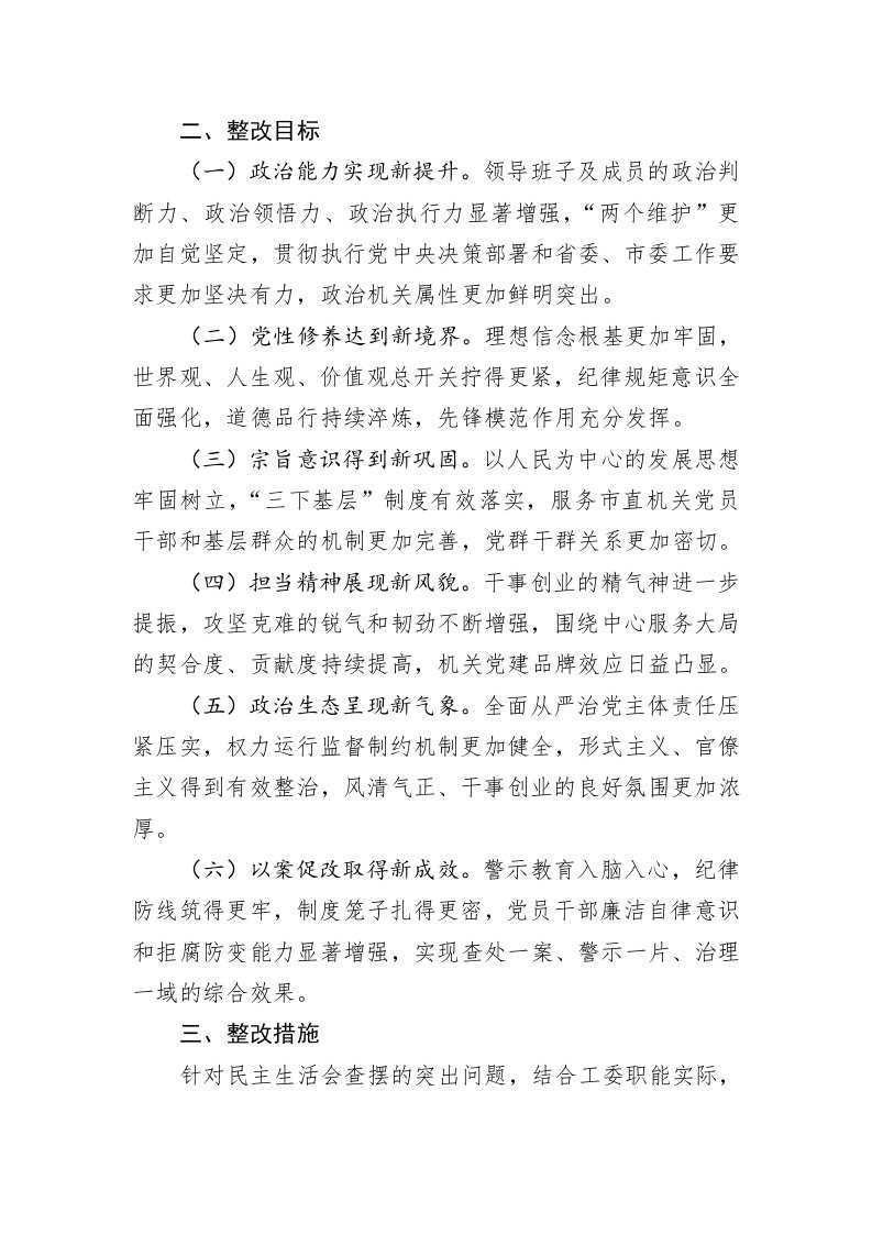 标题:市委直属机关工委领导班子2025年度民主生活会查摆问题整改方案