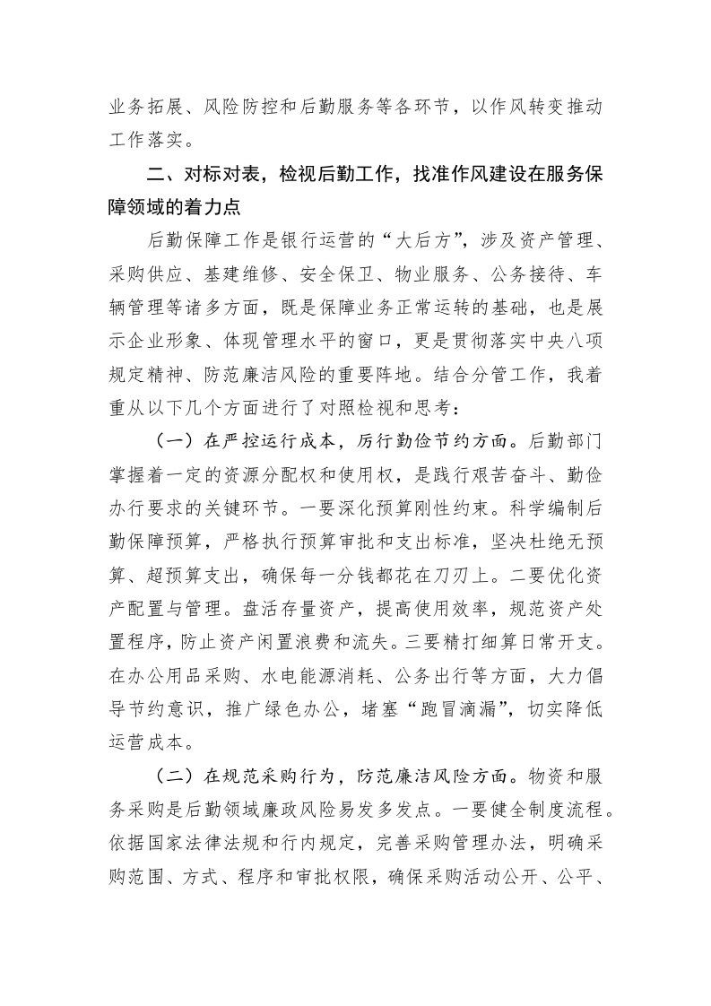 农商行党委班子成员在2025年度民主生活会会前集中学习研讨发言材料分管后勤工作1