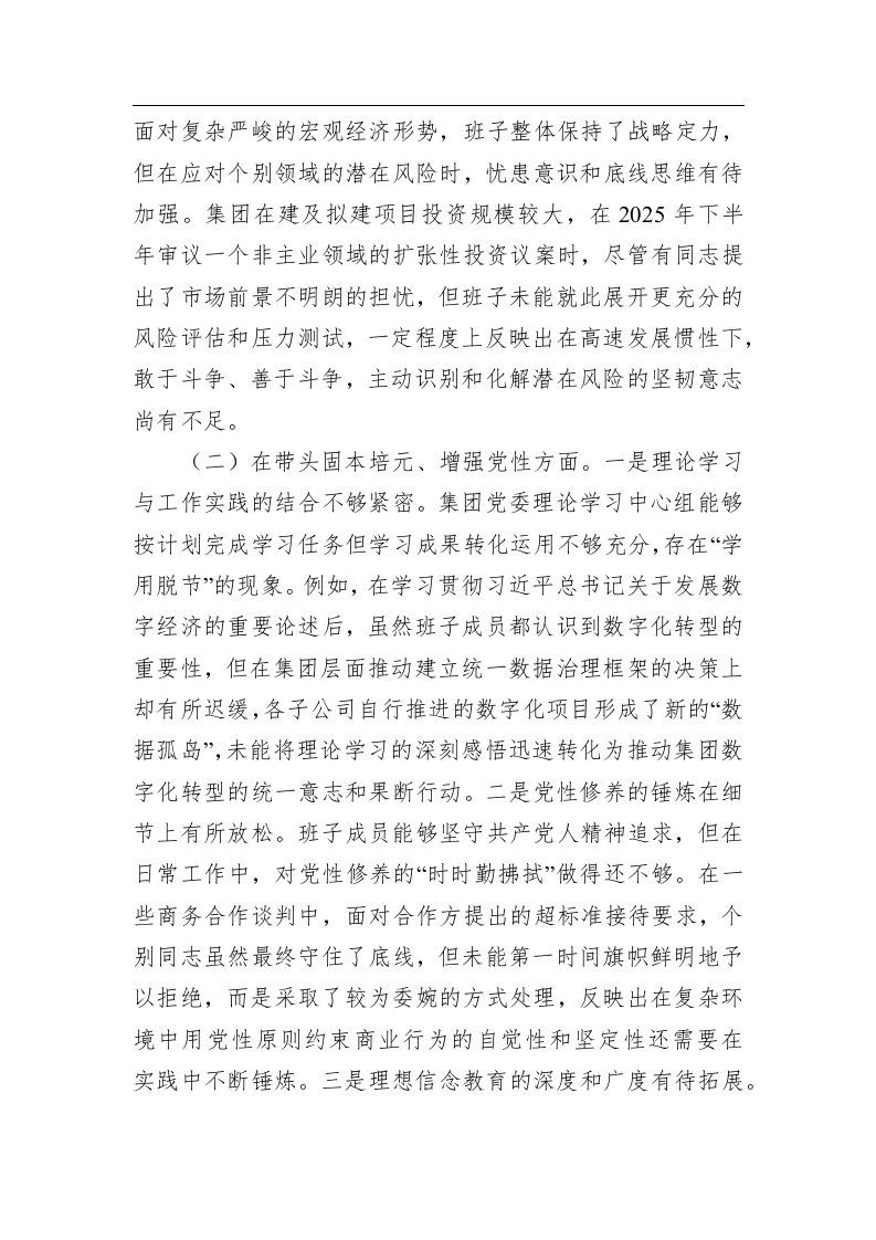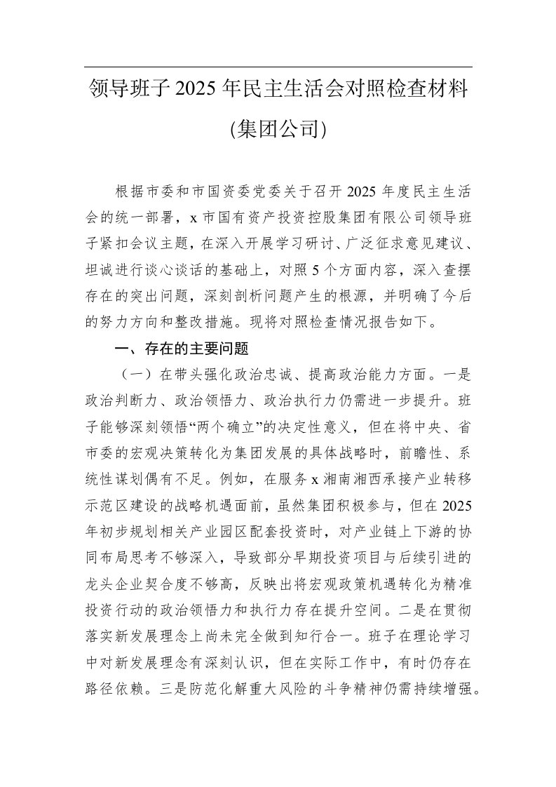 标题:领导班子2025年民主生活会对照检查材料汇编8篇集团公司