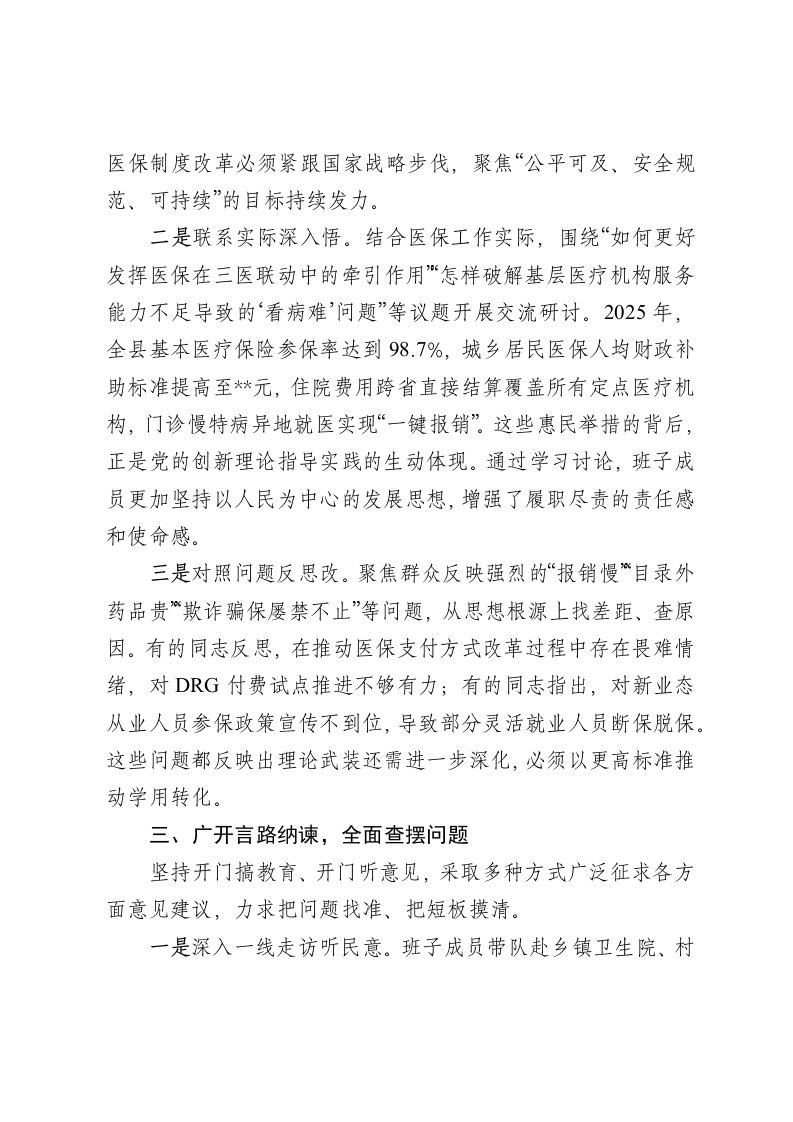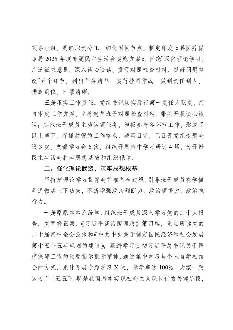 标题:局党组2025年度专题民主生活会准备工作情况报告
