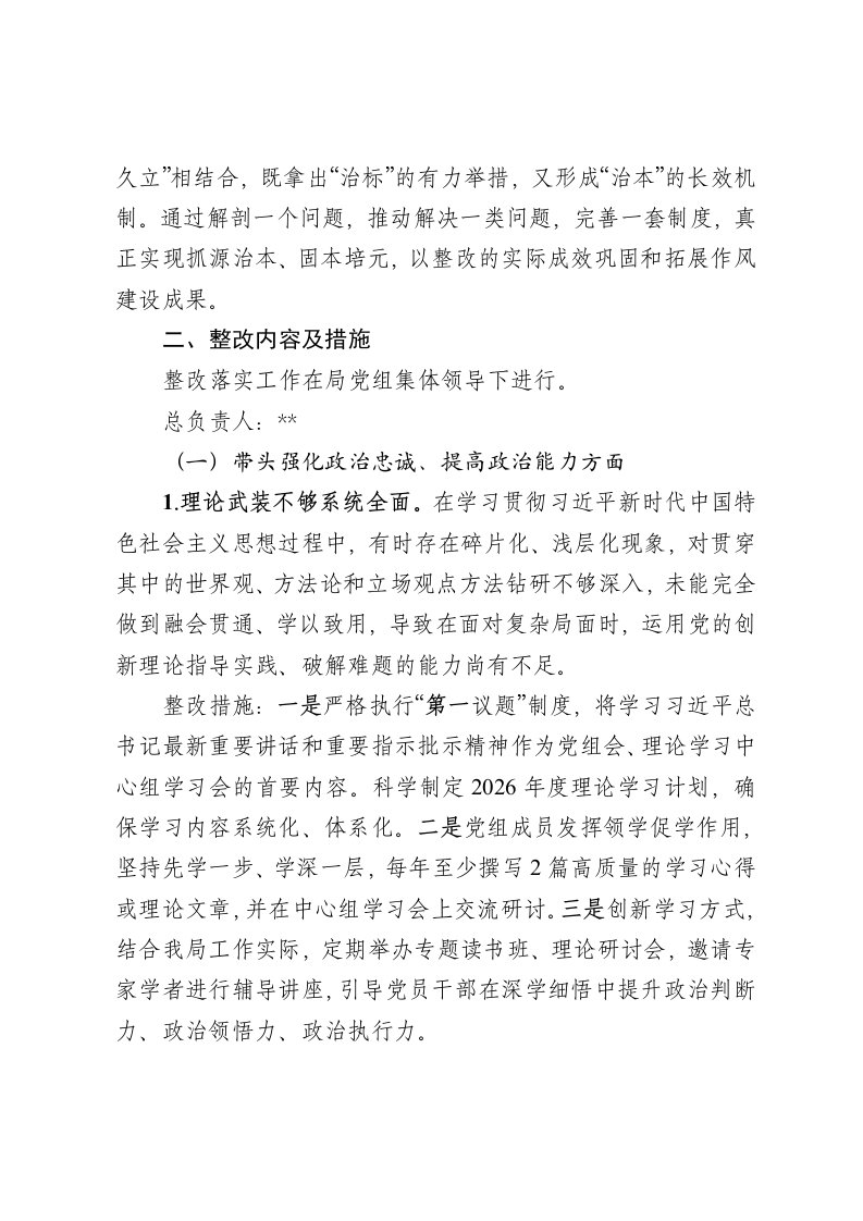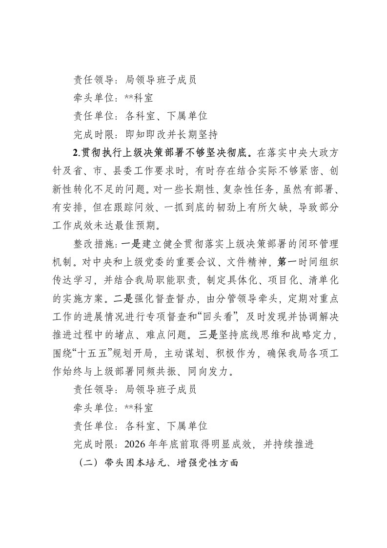 标题:局党组2025年度民主生活会整改落实方案