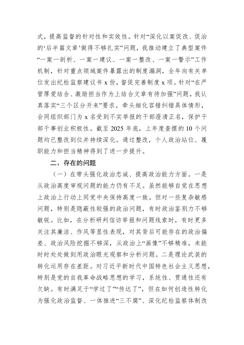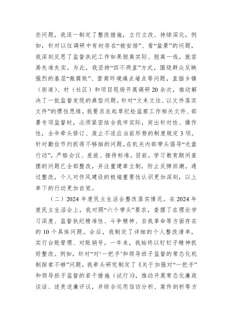 标题:纪委书记2025年专题民主生活会对照检查材料