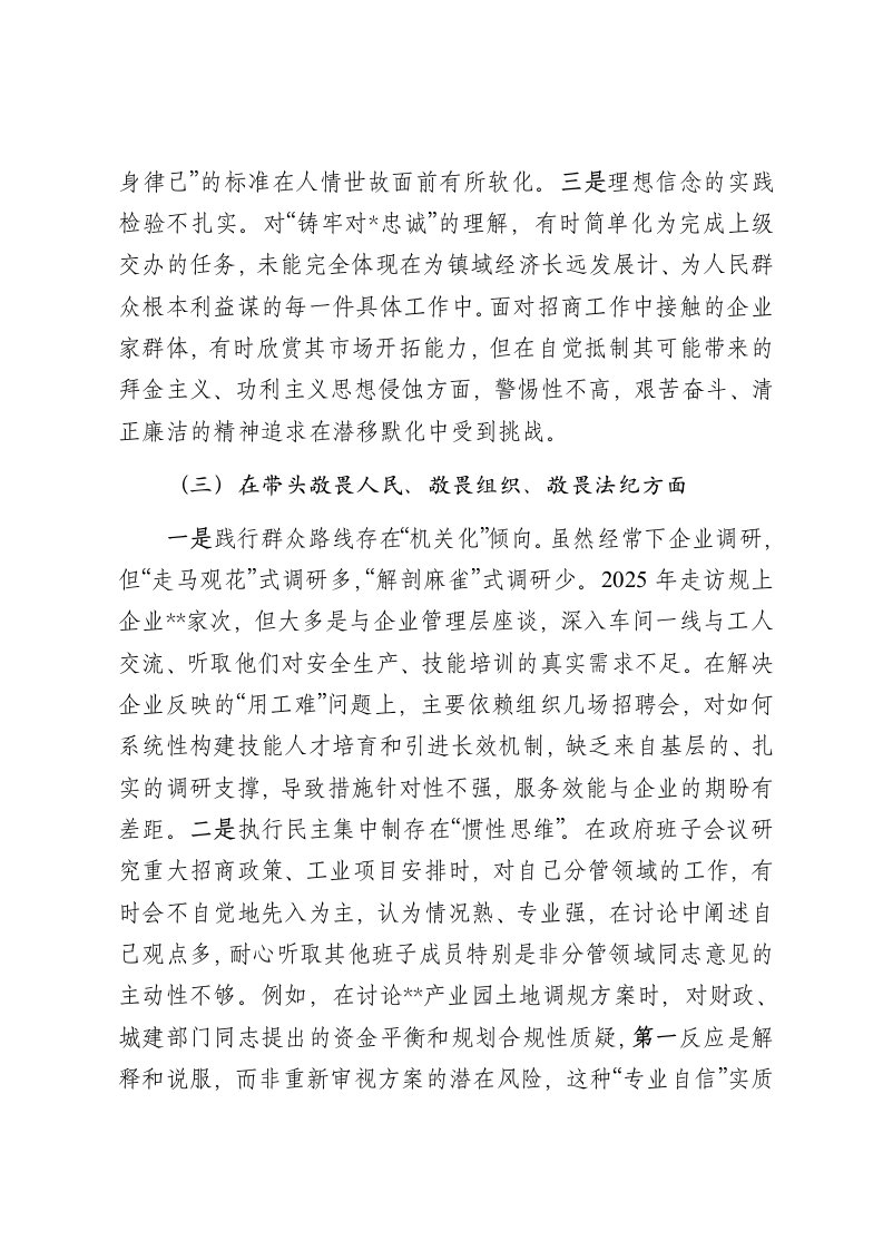 标题:副镇长2025年度民主生活会个人对照检查材料五个带头