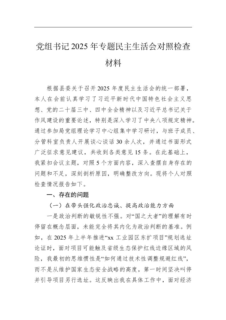 标题:党组书记2025年专题民主生活会对照检查材料汇编3篇