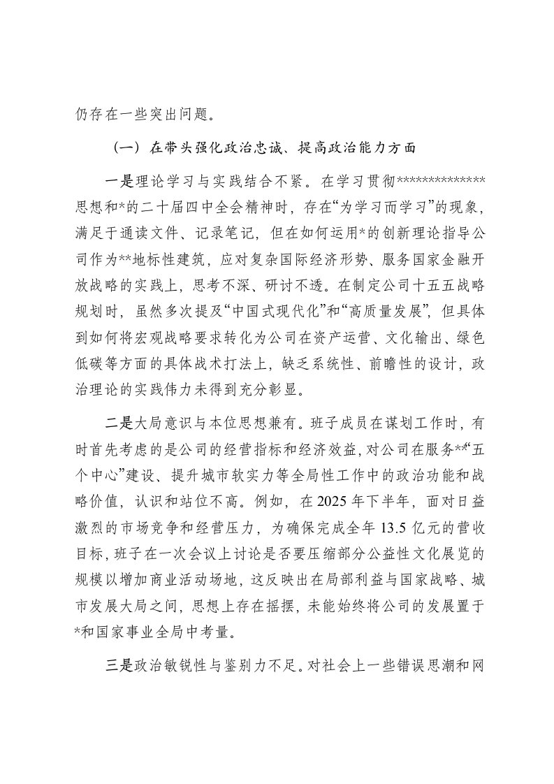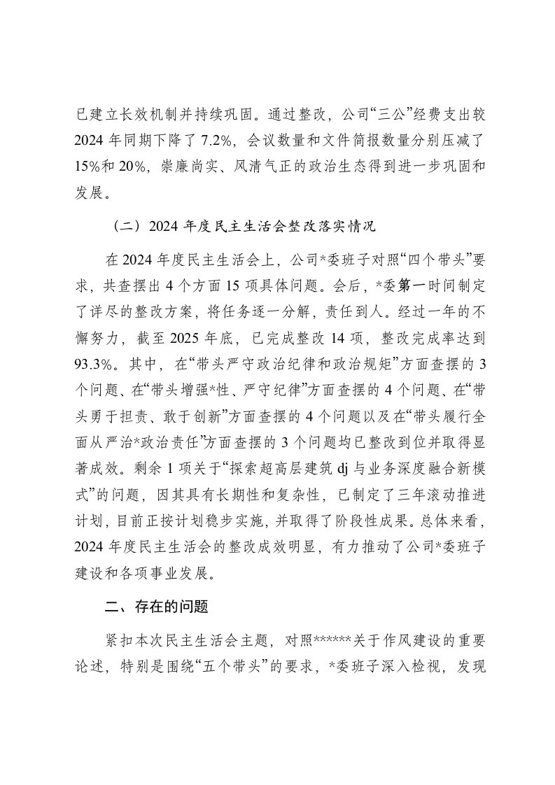标题:党委2025年度民主生活会班子对照检查材料带案例