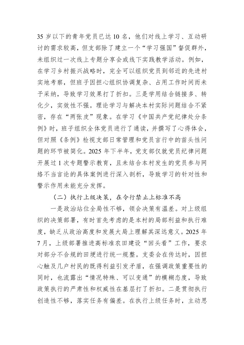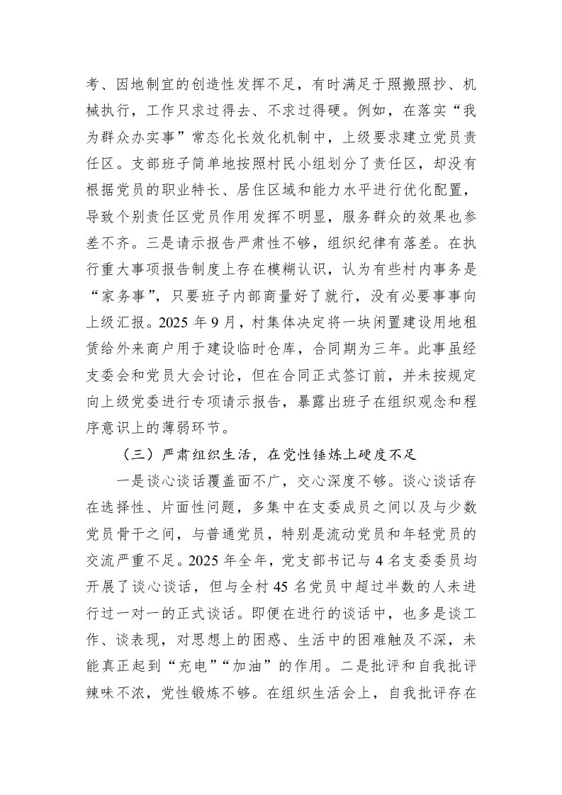 标题:村党支部2025年度组织生活会对照检查材料