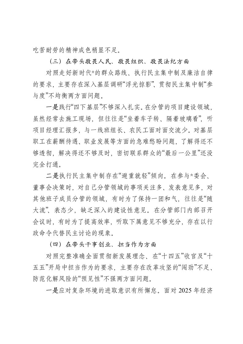 X发展集团副总经理2025年度民主生活会个人发言提纲聚焦作风建设强根基凝心聚力攻坚促发展