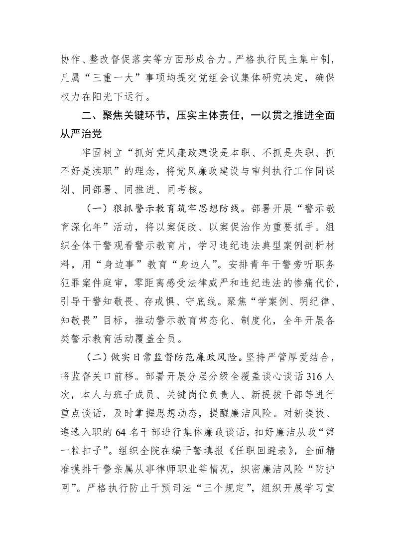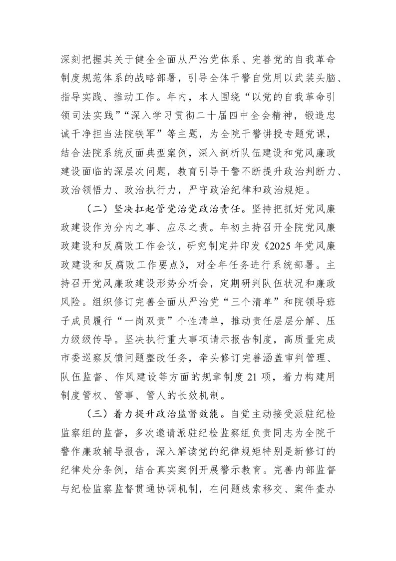 XX市中级人民法院院长2025年度履行党风廉政建设责任制情况报告