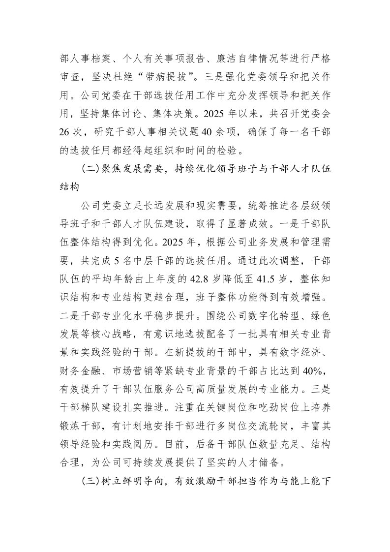 标题:XX分公司党委2025年度干部选拔任用工作情况报告