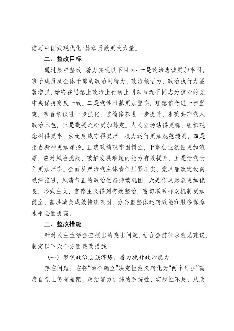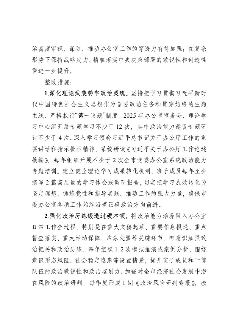标题:2025年度市委办公室民主生活会查摆问题整改方案