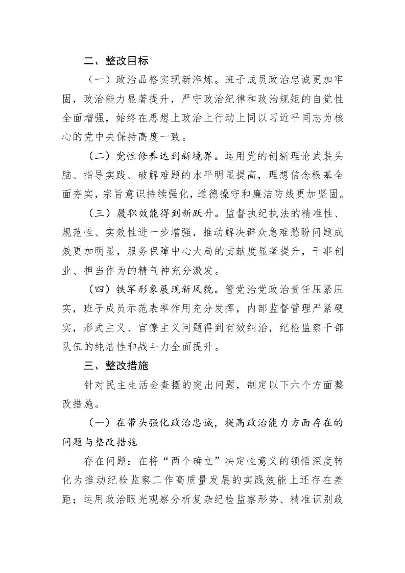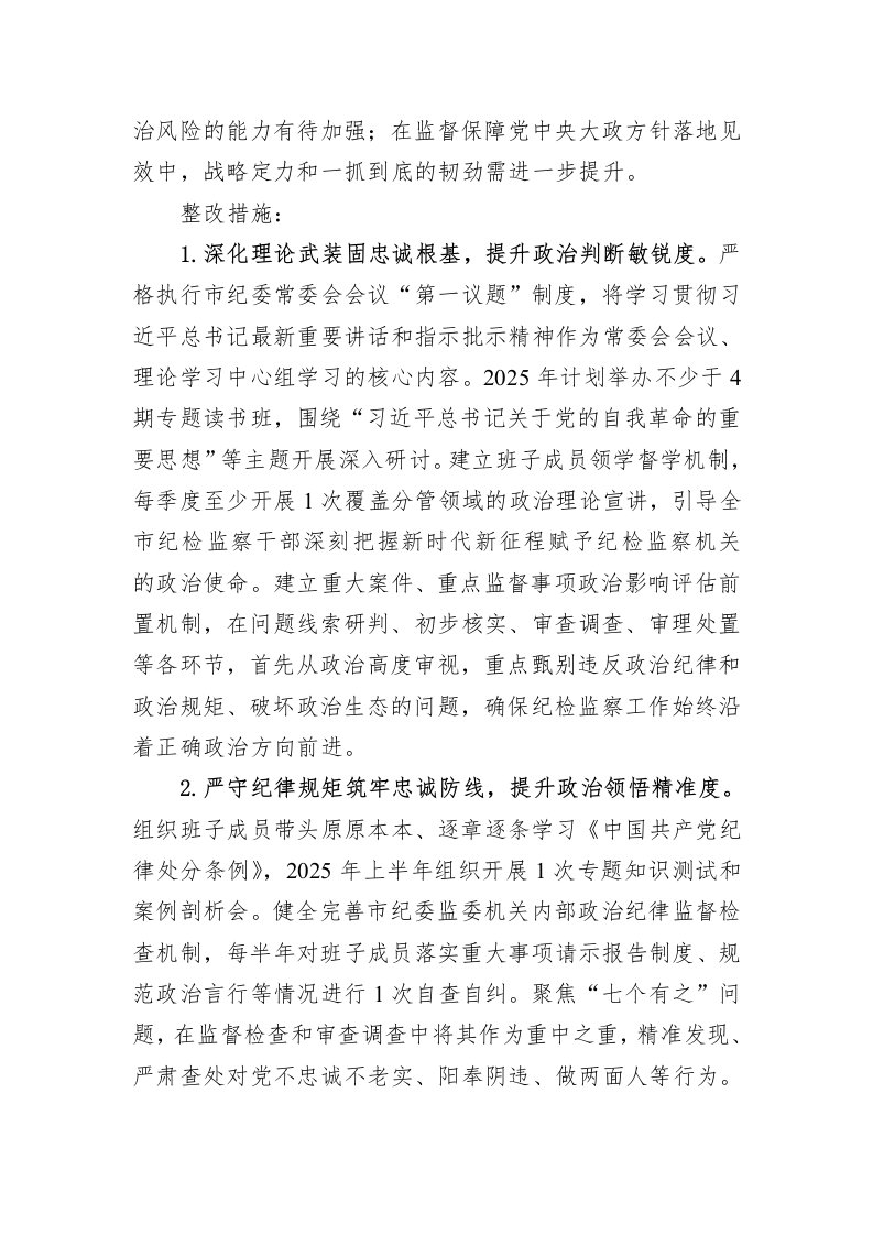 标题:2025年度市纪委监委民主生活会查摆问题整改方案