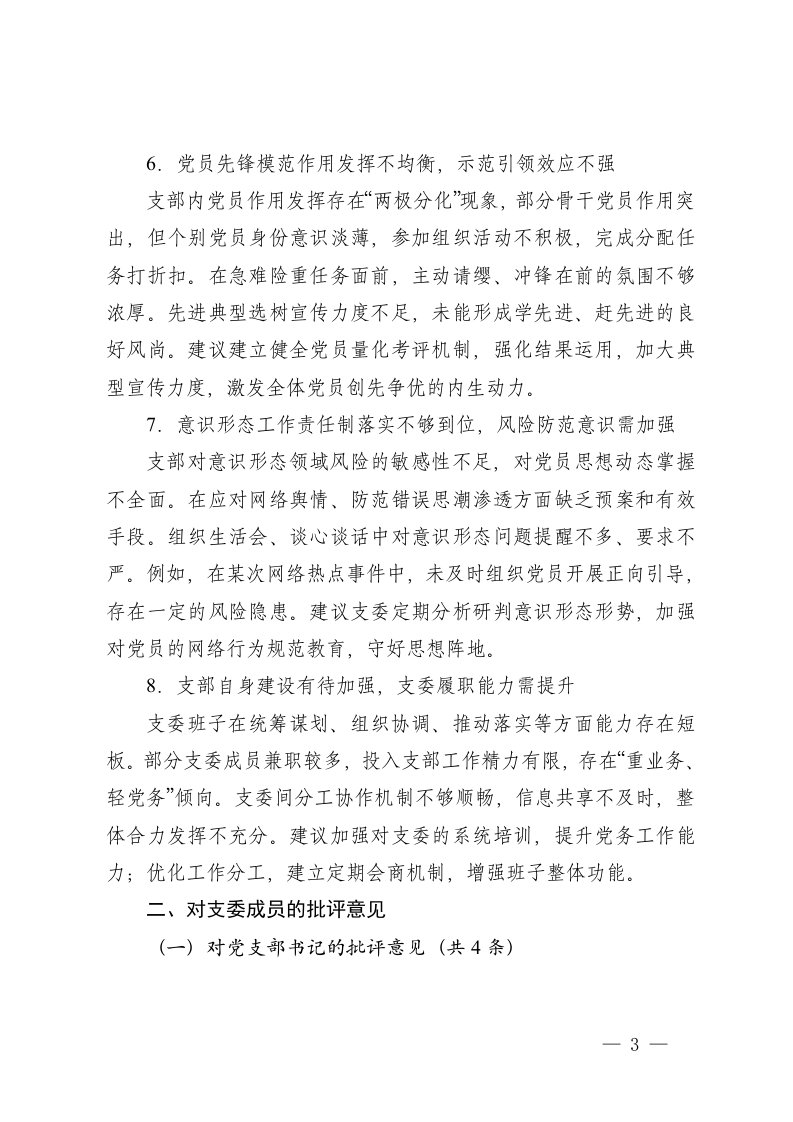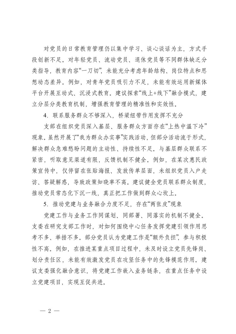 标题:2025年-2026度组织生活会对党支部及支委成员的批评意见2篇