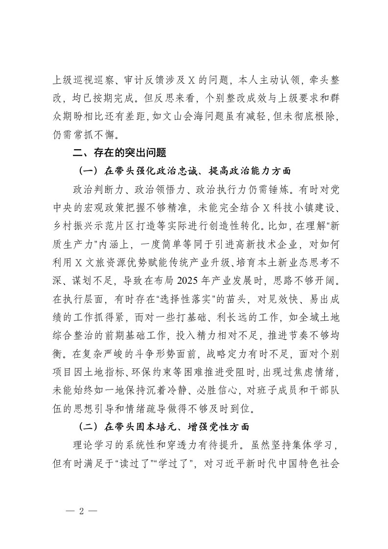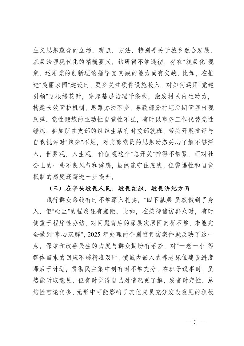标题:镇党委书记2025年度民主生活会对照检查材料