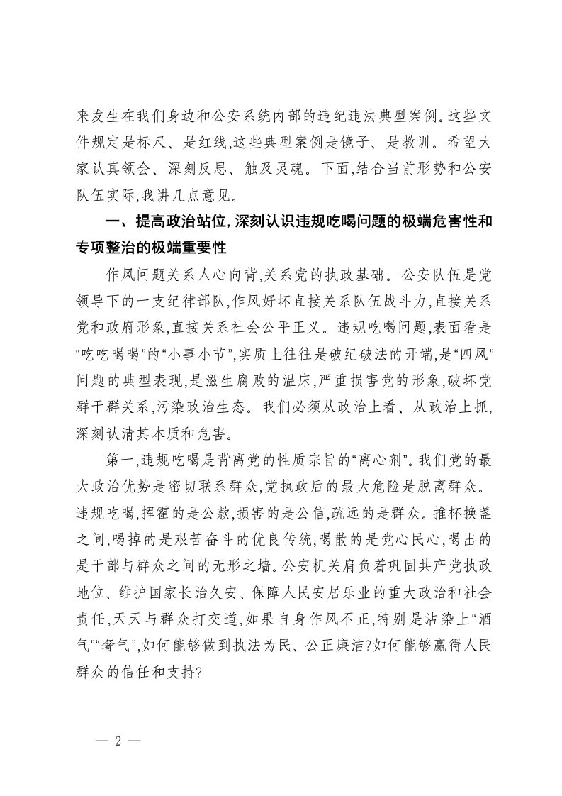 标题:在正风肃纪警示教育会暨违规吃喝专项查纠行动推进会上的讲话