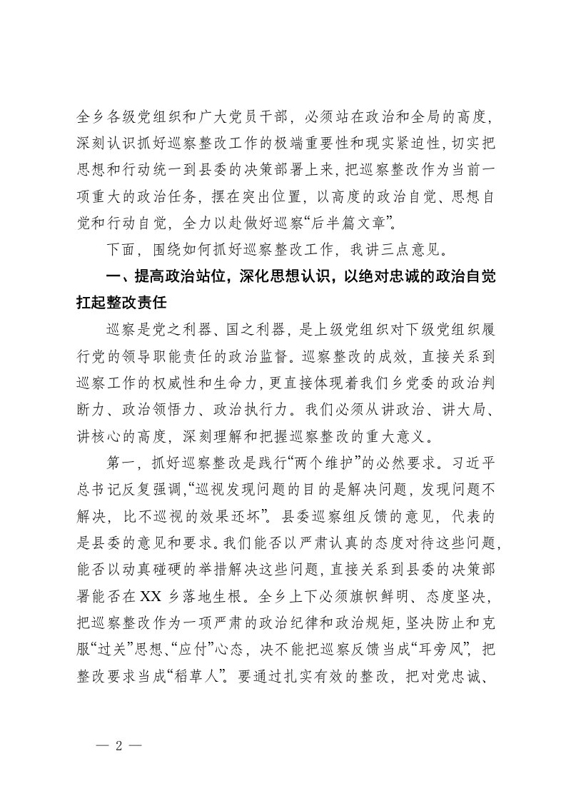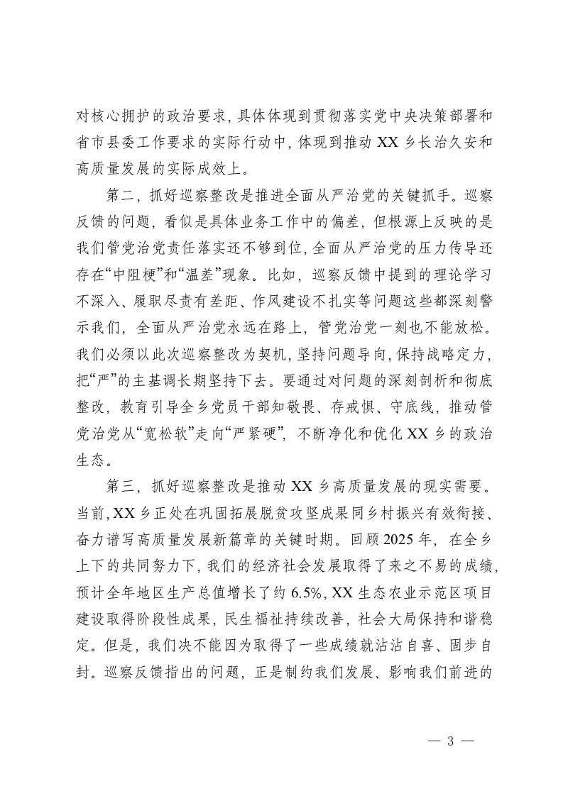 标题:在巡察组反馈意见整改工作动员部署会上的讲话