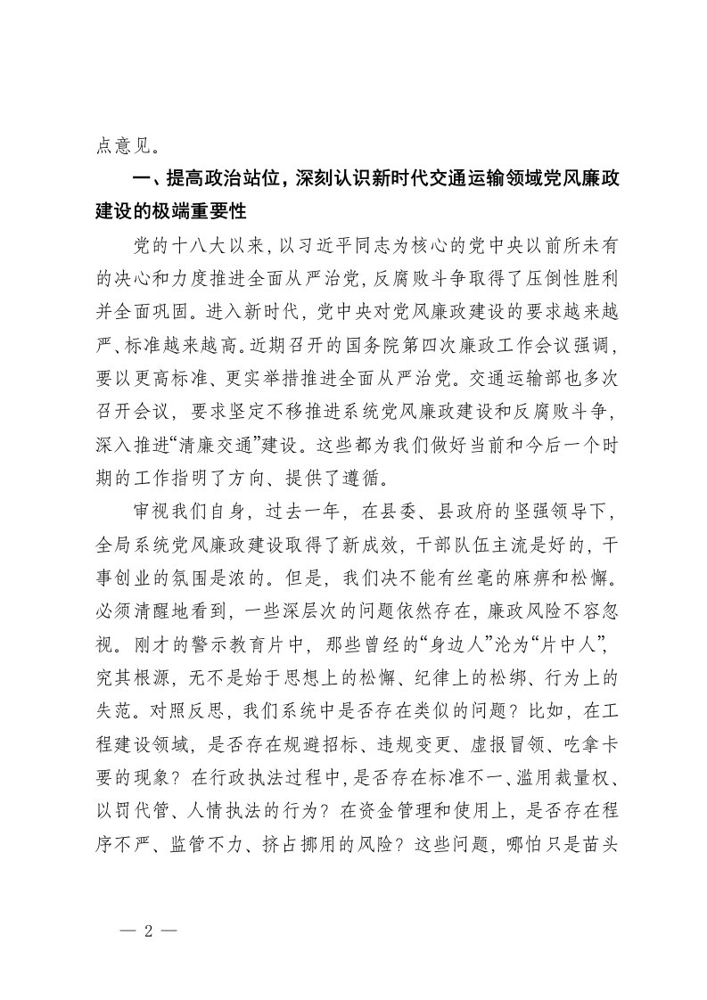 标题:在县交通运输局2026年党风廉政教育开年第一课上的讲话