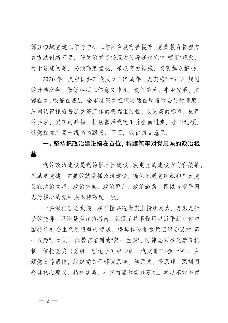 标题:在市党组织书记抓基层党建工作述职评议会议上的讲话