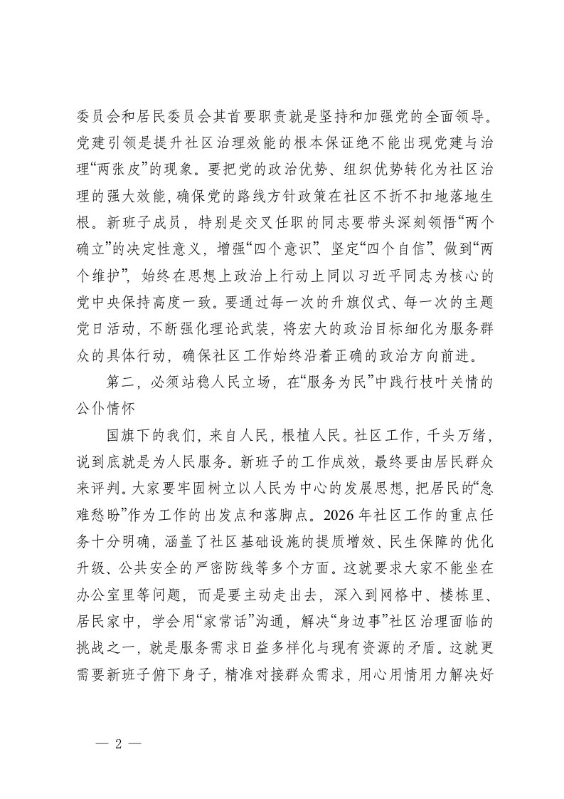讲话在社区新一届两委干部任职升旗仪式上的讲话讲话在社区新一届两委干部任职升旗仪式上的讲话