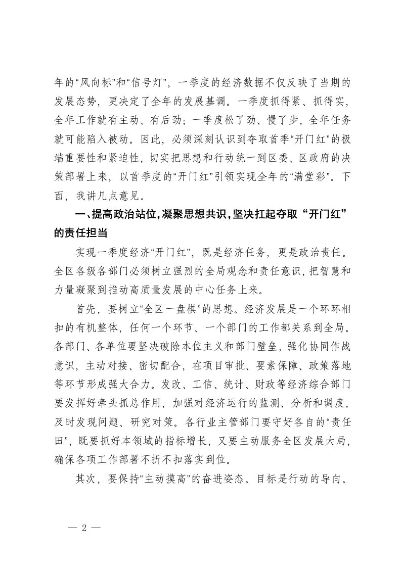 标题:在区2026年一季度经济开门红专题会议上的讲话