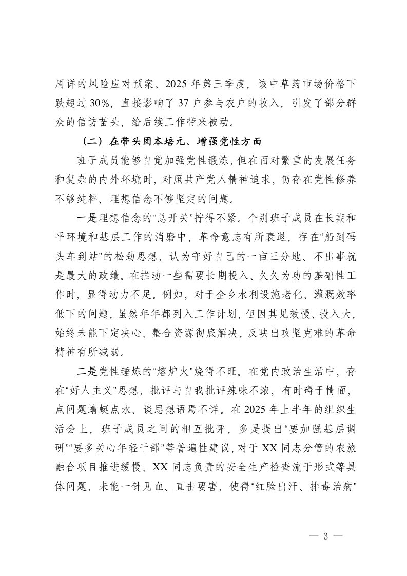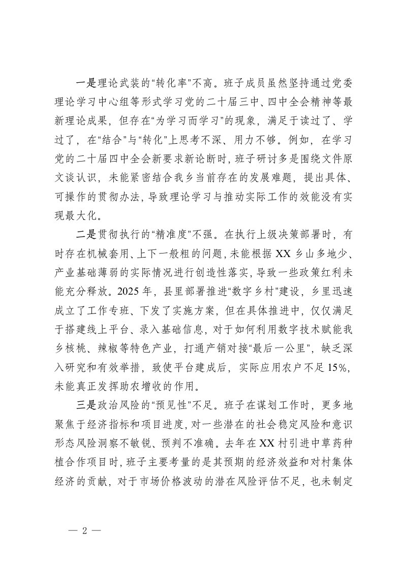 标题:乡镇领导班子2025年度民主生活会对照检查材料
