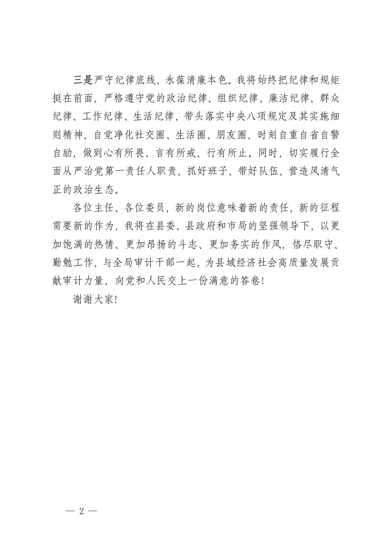 标题:县审计局局长任职表态发言