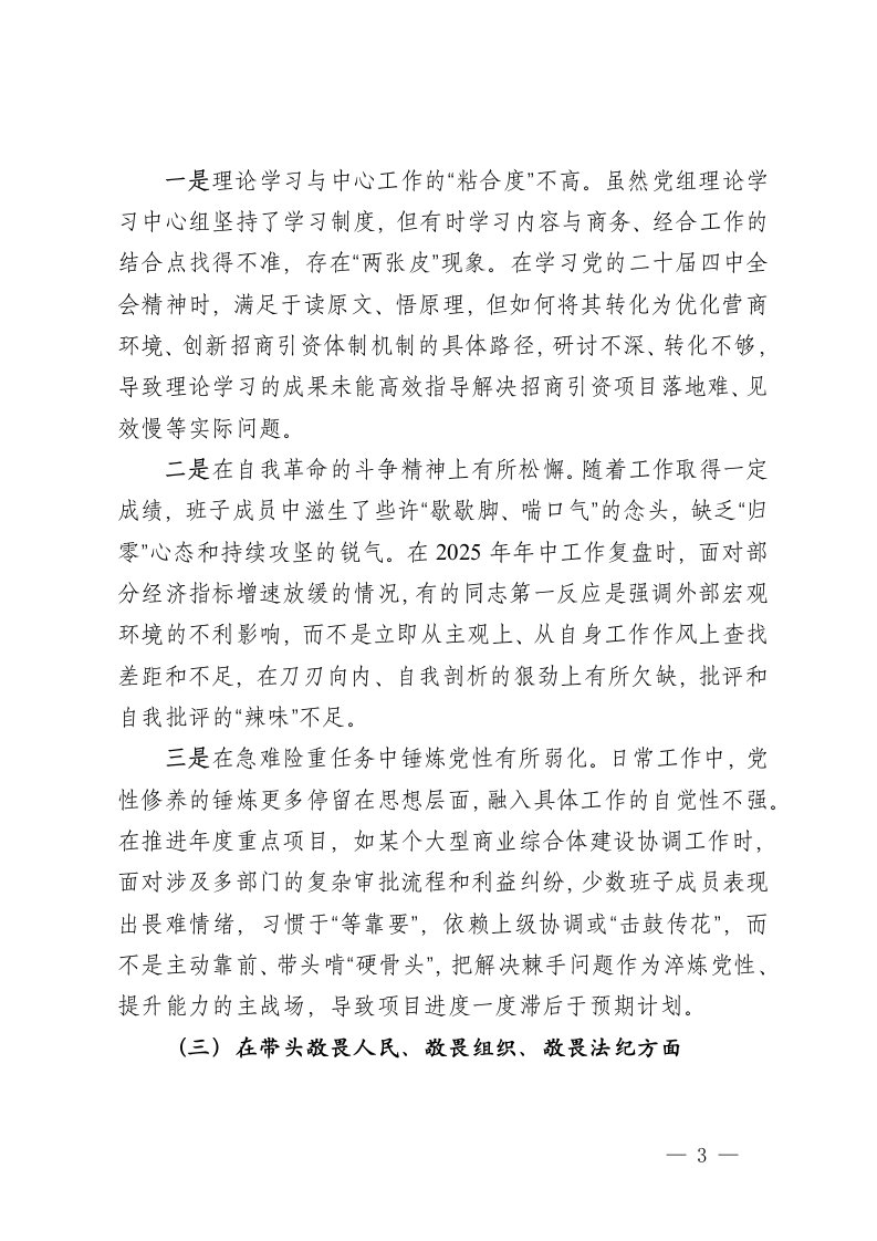 县商务和经济合作局党组2025年度民主生活会班子对照检查材料五个带头
