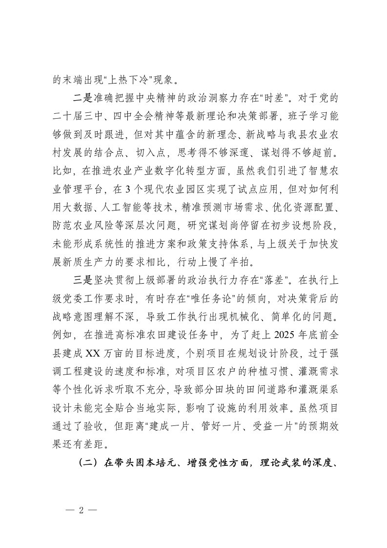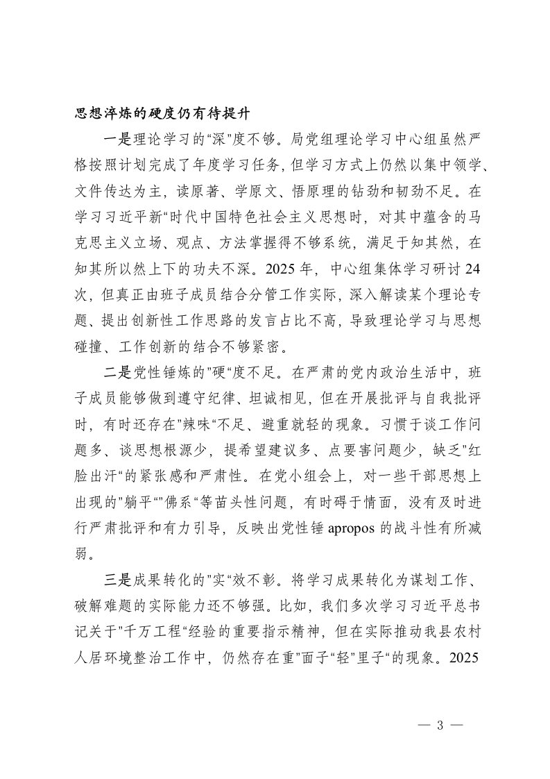 标题:县农业农村局党组2025年度民主生活会班子对照检查材料五个带头