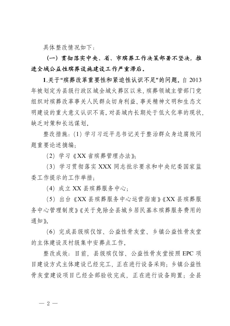 标题:县民政局关于县委殡葬领域专项巡察反馈意见的整改情况报告