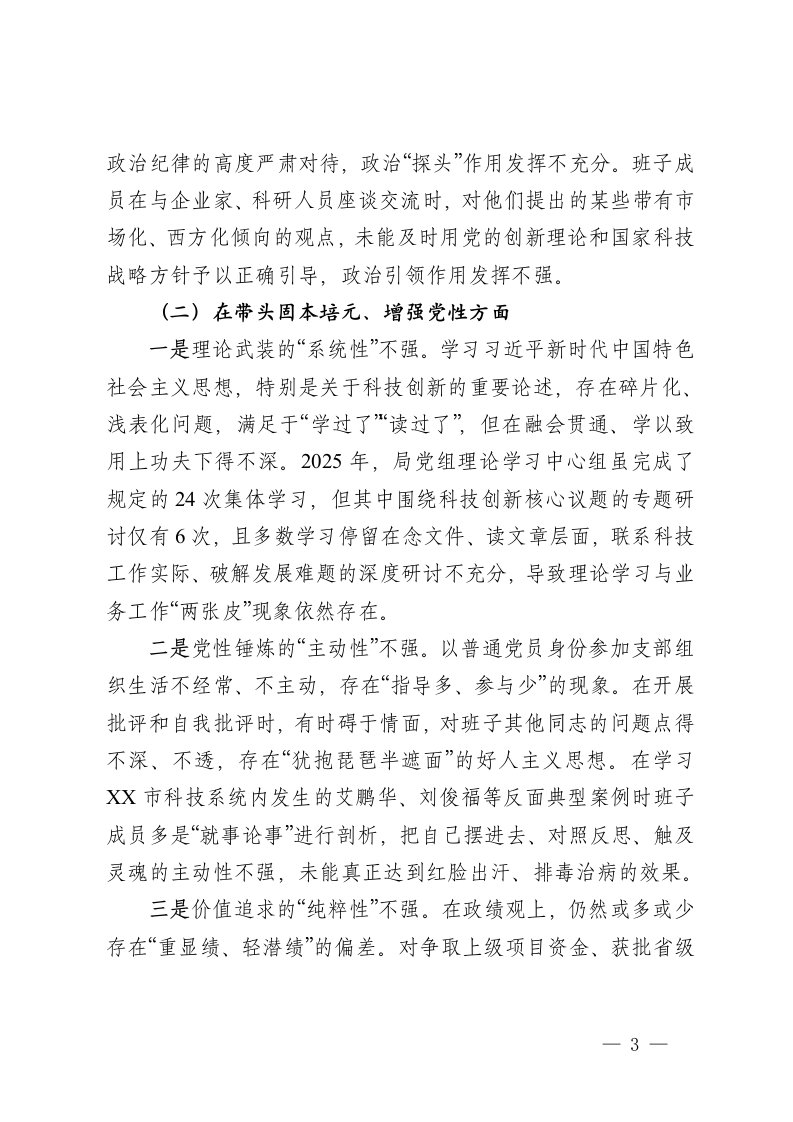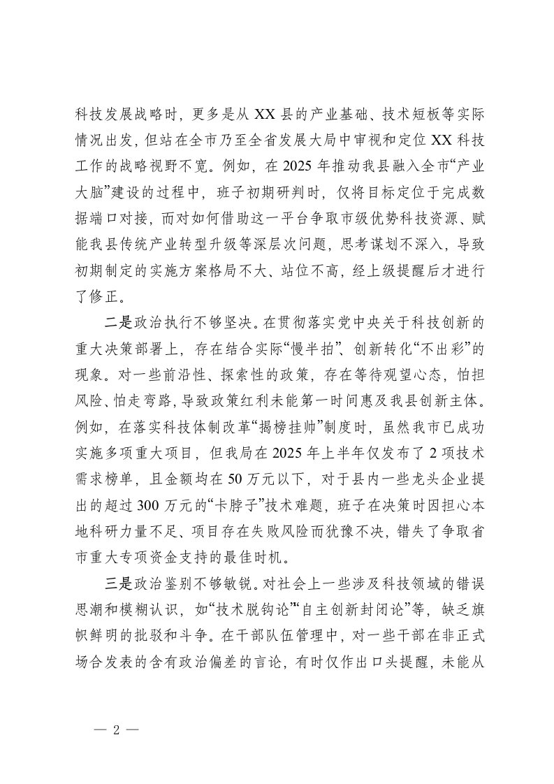 标题:县科技局领导班子2025年度民主生活会对照检查材料