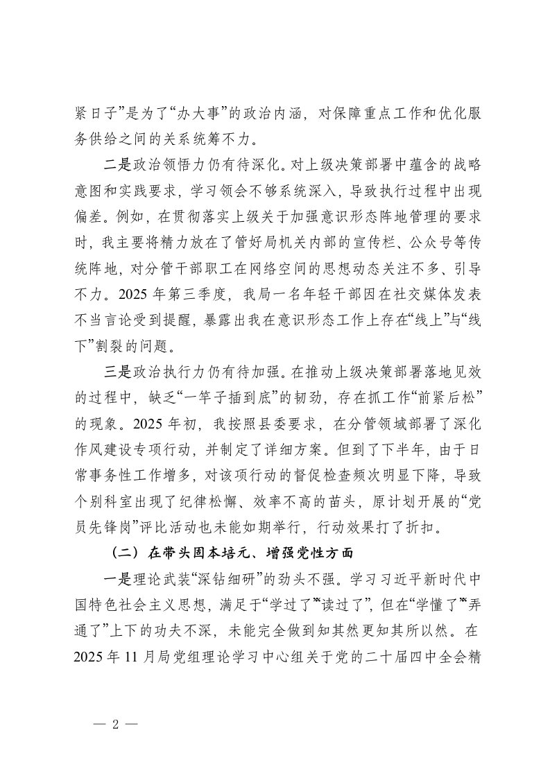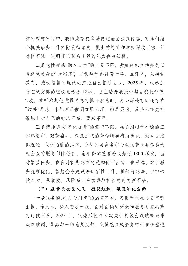 标题:县机关事务局副主任2025年度民主生活会个人对照检查材料